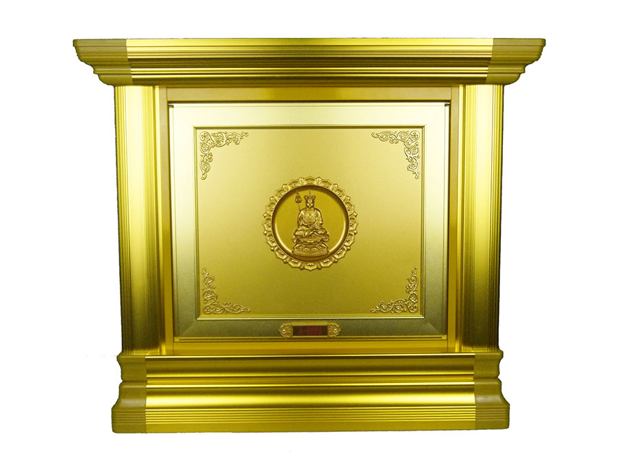 骨灰存放架是由箱體、面板、側(cè)板、頂蓋、底座、轉(zhuǎn)角、封板等構(gòu)成,以及佛臺、掛落、佛 龕等相關(guān)配件構(gòu)成。 箱體:分鍍鋅板、不銹鋼板、鋁板等五金板材箱體,鋁合金中空板扣接式箱體和純鋁壓鑄型 箱體。 面板:面板根據(jù)工藝不同、材料不同,風格各異、大不相同,既要起到美觀易分類作用,又 要起到防火、防塵、防潮、防蟲等作用。 側(cè)板:用于裝飾和保護箱體側(cè)面的作用,又可根據(jù)現(xiàn)場,對存放架分類的標識作用,一目了 然方便管理。 頂蓋、底座:都是穩(wěn)固整列和整排箱體水平線,底座還起到一部分承重作用。 轉(zhuǎn)角、封板:箱體轉(zhuǎn)彎處和空隙處塑形的作用。 佛臺:由幾個骨灰存放架組成一個小型佛龕臺,用于放置佛像。 佛龕、掛落:整排存放架為了劃分區(qū)域,在每個區(qū)域靠墻上方,設(shè)置小型佛龕,為了美觀, 加上掛落。