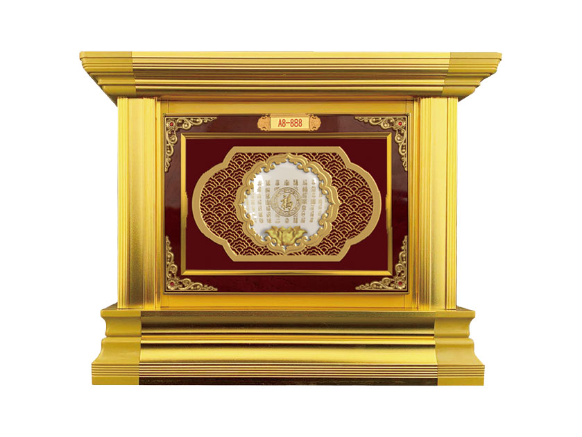 骨灰存放架是由箱體、面板、側板、頂蓋、底座、轉角、封板等構成,以及佛臺、掛落、佛 龕等相關配件構成。 箱體:分鍍鋅板、不銹鋼板、鋁板等五金板材箱體,鋁合金中空板扣接式箱體和純鋁壓鑄型 箱體。 面板:面板根據工藝不同、材料不同,風格各異、大不相同,既要起到美觀易分類作用,又 要起到防火、防塵、防潮、防蟲等作用。 側板:用于裝飾和保護箱體側面的作用,又可根據現場,對存放架分類的標識作用,一目了 然方便管理。 頂蓋、底座:都是穩(wěn)固整列和整排箱體水平線,底座還起到一部分承重作用。 轉角、封板:箱體轉彎處和空隙處塑形的作用。 佛臺:由幾個骨灰存放架組成一個小型佛龕臺,用于放置佛像。 佛龕、掛落:整排存放架為了劃分區(qū)域,在每個區(qū)域靠墻上方,設置小型佛龕,為了美觀, 加上掛落。