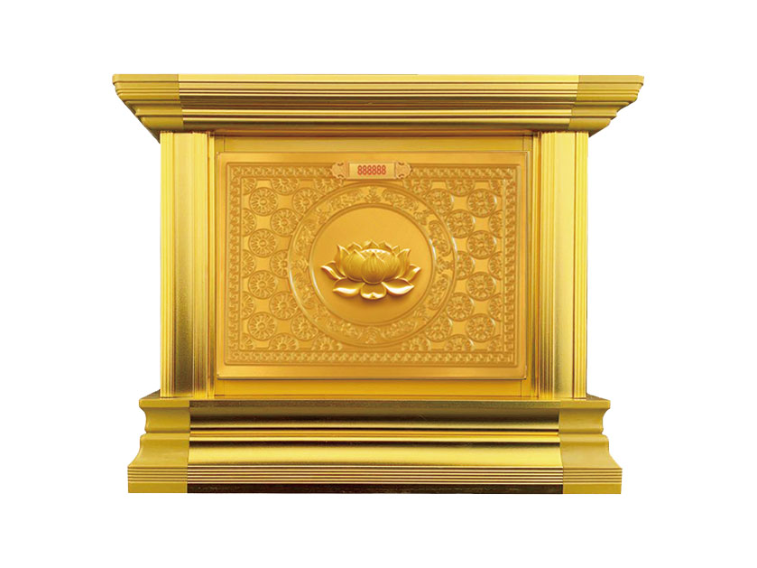 骨灰存放架是由箱體、面板、側(cè)板、頂蓋、底座、轉(zhuǎn)角、封板等構(gòu)成,以及佛臺(tái)、掛落、佛 龕等相關(guān)配件構(gòu)成。 箱體:分鍍鋅板、不銹鋼板、鋁板等五金板材箱體,鋁合金中空板扣接式箱體和純鋁壓鑄型 箱體。 面板:面板根據(jù)工藝不同、材料不同,風(fēng)格各異、大不相同,既要起到美觀易分類作用,又 要起到防火、防塵、防潮、防蟲等作用。 側(cè)板:用于裝飾和保護(hù)箱體側(cè)面的作用,又可根據(jù)現(xiàn)場(chǎng),對(duì)存放架分類的標(biāo)識(shí)作用,一目了 然方便管理。 頂蓋、底座:都是穩(wěn)固整列和整排箱體水平線,底座還起到一部分承重作用。 轉(zhuǎn)角、封板:箱體轉(zhuǎn)彎處和空隙處塑形的作用。 佛臺(tái):由幾個(gè)骨灰存放架組成一個(gè)小型佛龕臺(tái),用于放置佛像。 佛龕、掛落:整排存放架為了劃分區(qū)域,在每個(gè)區(qū)域靠墻上方,設(shè)置小型佛龕,為了美觀, 加上掛落。